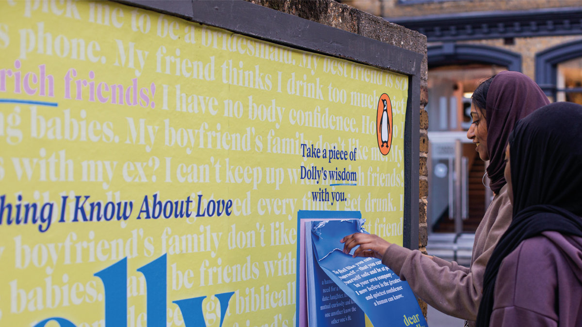 In Dear Dolly: On Love, Life and Friendship, journalist and bestselling author Dolly Alderton, Dolly shares her wisdom, insight and empathy in collected highlights from her agony aunt column in The Sunday Times Style. For the launch promo campaign Penguin asked us to create an interactive billboard showcasing Dolly’s warm, wise and funny writing. The billboard highlighted the themes of the book and included a ‘tearaway’ element featuring some of Dolly‘s advice on dating, friendship and relationships. This simple but effective feature allowed passers by to engage with the site and take away some of Dolly‘s words of wisdom.